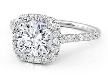 A platinum halo engagement ring